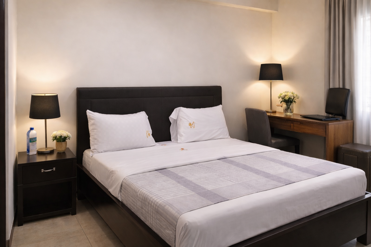 Our Double Room is designed for two guests seeking comfort, convenience, and a relaxing stay in Nyagatare. The room features a spacious double bed dressed in high-quality linens and soft pillows, ensuring a restful and rejuvenating sleep. Large windows brighten the space with natural light, while tasteful African-inspired décor adds warmth and a welcoming ambiance.